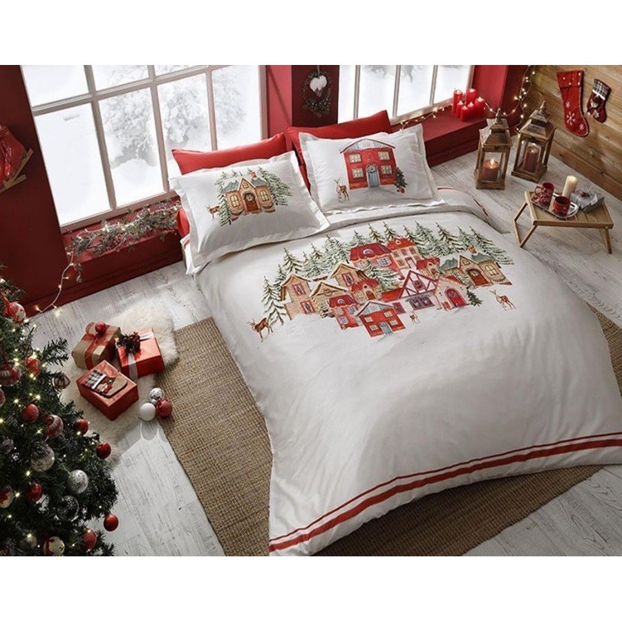 Коледно спално бельо двоен памук 100% сатен, 4 части, 230 x 260 см, TAC