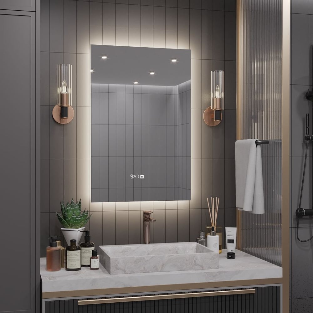 Зеркало Alias Квартал 90x60 с нейтральной LED-подсветкой и часами