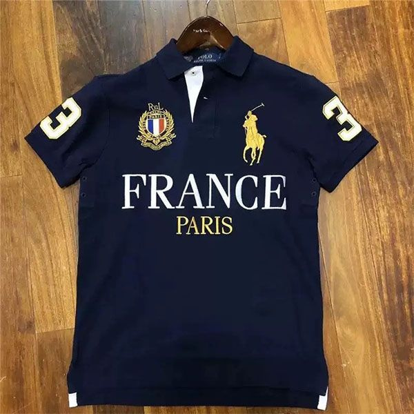 Поло Мужской Polo Ralph Lauren темно-синий, желтый Короткий, размер 42