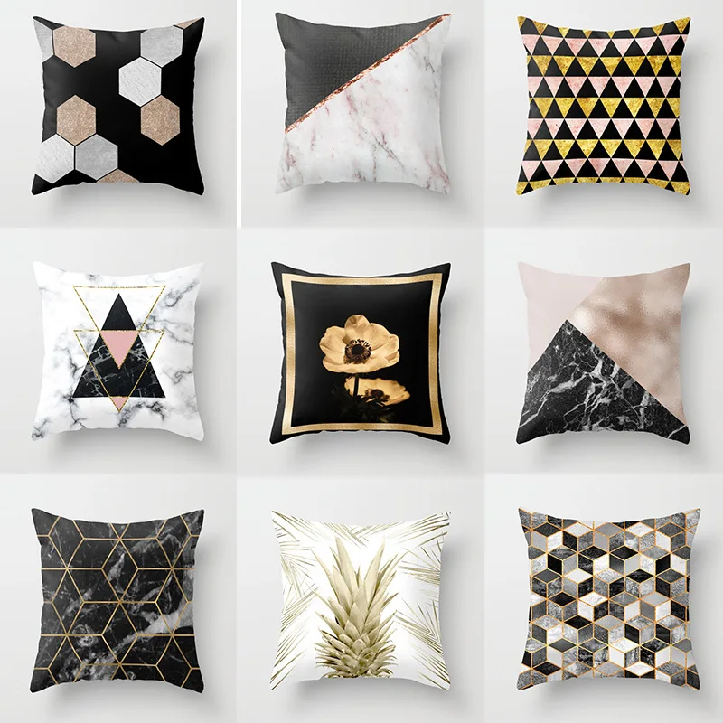 Геометрический Чехол на подушку ананас черный золотой абстрактный принт